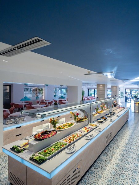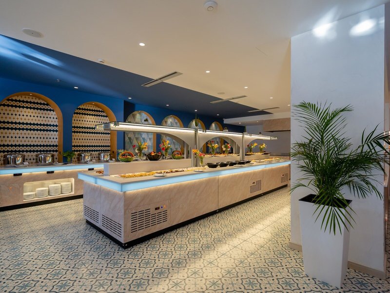 - Hauptrestaurant „All Incluvise Restaurant“: Küche: international, italienisch, mediterran, Babynahrung, Biolebensmittel, Diätküche, glutenfreie Gerichte, Kinderbuffet, Kindermenü, lactosefreie Gerichte, leichte Gerichte, saisonale Gerichte, vegetarische Gerichte, vegane Gerichte, Buffet, Menüwahl, gesetztes Menü, klimatisierbar, mit Terrasse, am Pool, angemessene Kleidung erwünscht