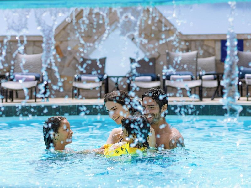 Sport & Fitness: Neben Innen- und Außenpools gibt es einen Kinderbadebereich. Erfrischende Getränke an der Pool-/Snackbar und wohlige Entspannung im Whirlpool bringen alle Wasserratten in die beste Stimmung. Auf der Sonnenterrasse sind Liegestühle und Schirme vorhanden. Aktive Gäste können sich nach Herzenslust beim Radfahren/Mountainbiking austoben. Fitnessstudio und Aerobic sind Teil des Sport- und Freizeitangebots des Hauses. In der Unterbringung werden verschiedene Wellnessangebote wie Spa, Sauna, Dampfbad, Schönheitssalon, Massage-Anwendungen und Solarium offeriert. Ein Animationsprogramm und Live-Musik runden das Angebot ab.