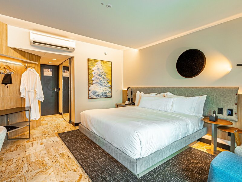 So wohnen Sie: Die Zimmer verfügen über eine Klimaanlage, Wohnzimmer und Badezimmer. Die Gäste können den Meerblick von Balkon oder Terrasse genießen. Die Zimmer verfügen über ein Doppelbett oder ein Queensize-Bett. Zustellbetten können angefordert werden. Außerdem sind ein Safe und eine Minibar verfügbar. In der Kochnische befinden sich ein Minikühlschrank und eine Tee-/Kaffeemaschine. Darüber hinaus sind ein Telefon mit Direktwahl, ein TV-Gerät mit Satelliten-/Kabelempfang, ein Radio, eine Stereoanlage und WiFi (ohne Gebühr) vorhanden. Die Badezimmer sind ausgestattet mit einer Dusche und einer Badewanne. Für den täglichen Gebrauch stehen ein Haartrockner, Bademäntel und ein Telefon zur Verfügung. Buchbar sind rollstuhlgerechte Zimmer. Das Hotel bietet Familien-, Nichtraucher- und Raucherzimmer.