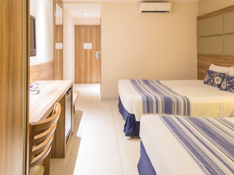 Lage & Umgebung Das Hotel liegt direkt am Copacabana-Strand in der Nähe von vielen großen Sehenswürdigkeiten von Rio de Janeiro. Ins Stadtzentrum gelangt man nach nur rund 15 min mit den öffentlichen Verkehrsmitteln, die Metrostation ist nur 500 m entfernt, der Zuckerhut ist etwa 5 km entfernt und nach Petropolis gelangt man nach rund 40 Fahrminuten. Zum Flughafen Santos Dumont sind es rund 15 Fahrminuten vom Strandhotel aus, der internationale Flughafen Rio de Janeiro - Galeão ist etwa 30 min entfernt.
