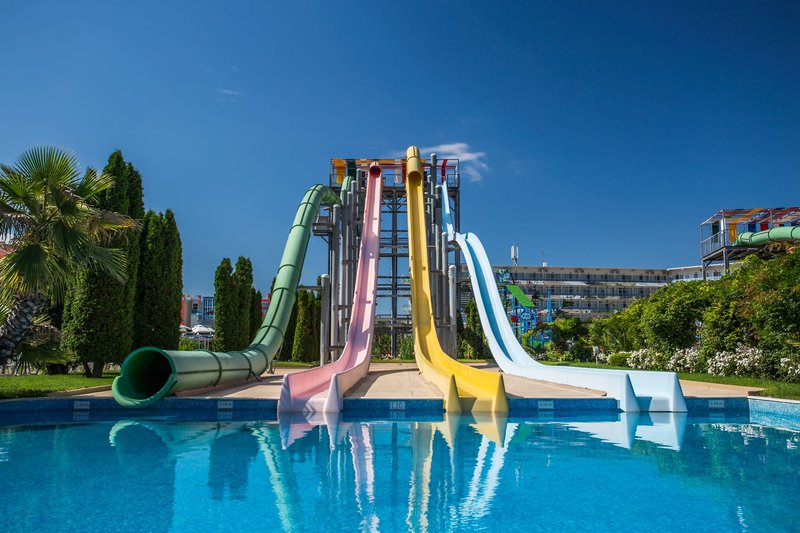 Felszereltség: Az Aqua Nevis Resort tökéletes választás egy felejthetetlen nyaraláshoz gyermekes családok számára. A szálloda 220 szobával, 5 emelettel, liftekkel, 24 órás recepcióval, előcsarnokkal és lobbybárral, büféétteremmel, medencebárral és snackbárral rendelkezik. A víz szerelmeseinek és a csúszdák szerelmeseinek a szálloda ingyenes napi belépést kínál a szomszédos ACTION AQUAPARKba, számos csúszdával, hullámmedencével és minden korosztály számára kialakított medencékkel (a vendégek életkorától, méretétől és egészségi állapotától függően speciális használati szabályok érvényesek. A víziparkban nem találhatók all-inclusive bárok és éttermek). A szálloda változatos sport- és szórakoztató programokat is kínál felnőttek és gyermekek számára.