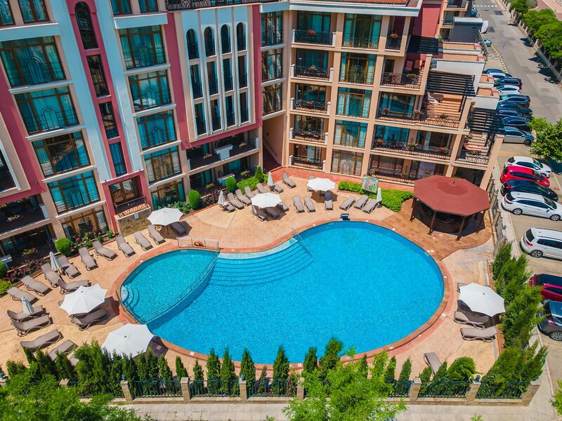 Das Hotel befindet sich in Pomorie, am Schwarzen Meer. Zahlreiche Einkaufs- und Unterhaltungsmöglichkeiten sowie Restaurants und Bars erreichen Sie nach ca. 200 m. Öffentliche Verkehrsmittel befinden sich in unmittelbarer Nähe. Der Flughafen von Burgas ist ca. 13 km entfernt.