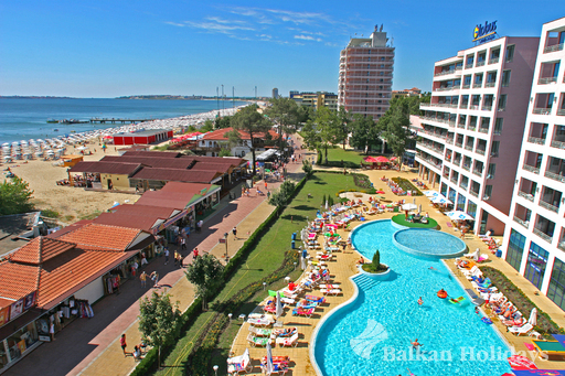 Das Hotel liegt zentral im Ferienort Sonnenstrand und ist nur durch eine Promenade vom feinsandigen Strand entfernt. In der näheren Umgebung finden Sie Einkaufs- und Unterhaltungsmöglichkeiten, Restaurants, Bars und Diskotheken. Die zum UNESCO-Welt-Kulturerbe zählende Stadt Nessebar erreichen Sie schon nach ca. 3 km, einen Aquapark nach etwa 5 km. Der Flughafen Burgas ist ca. 30 km entfernt.