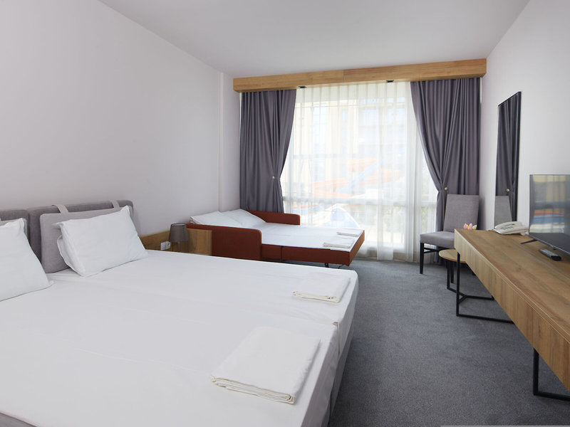 Bitte beachten Sie, dass sich bei einer Belegung im Doppelzimmer mit mehreren Zustellbetten die Nutzfläche der Räumlichkeiten verkleinert. Wir empfehlen Ihnen daher, sofern verfügbar, direkt ein Familienzimmer bestehend aus einem Raum oder aus mehreren Räumen, je nach Verfügbarkeit und Angebot des jeweiligen Hotels, zu buchen. Weiterhin ist die Größe der zur Verfügung gestellten Betten abhängig von den jeweiligen regionalen Besonderheiten der Hotelmöblierung.