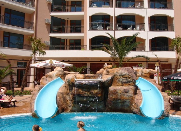 Napospart üdülőhely déli részén található. A strand kb 100 m-re található. A közelben bevásárló- és szórakozóhelyek, éttermek, bárok és éjszakai klubok találhatók. Burgasz repülőtere körülbelül 25 km-re található.