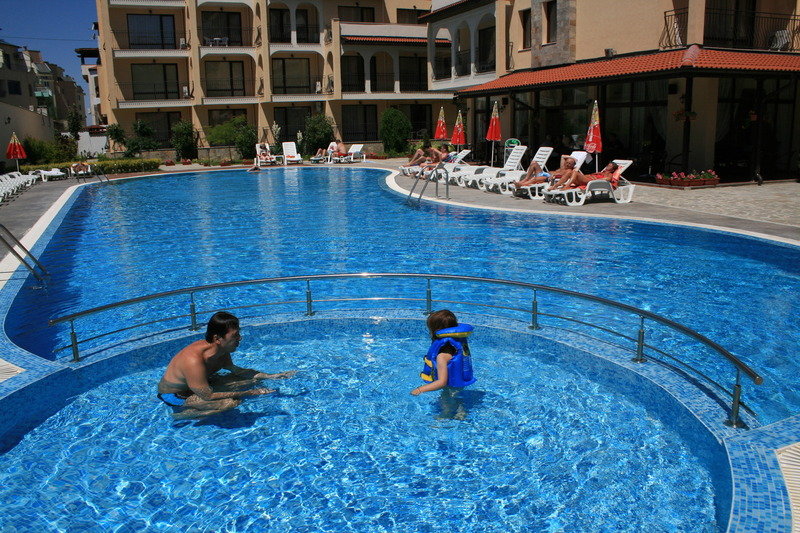 Das Hotel Rose Village liegt in Sonnenstrand unmittelbar an einem Sandstrand.