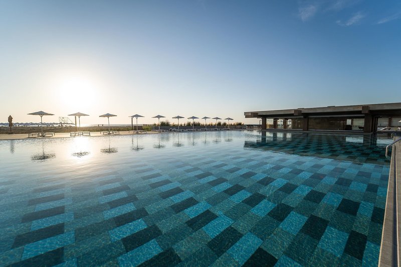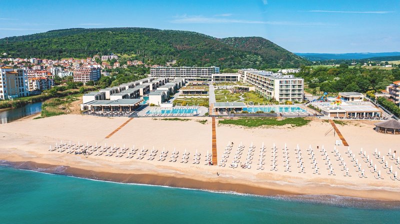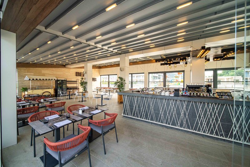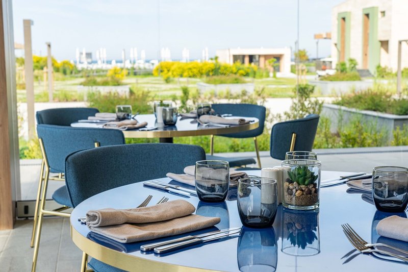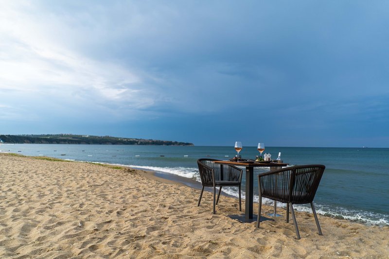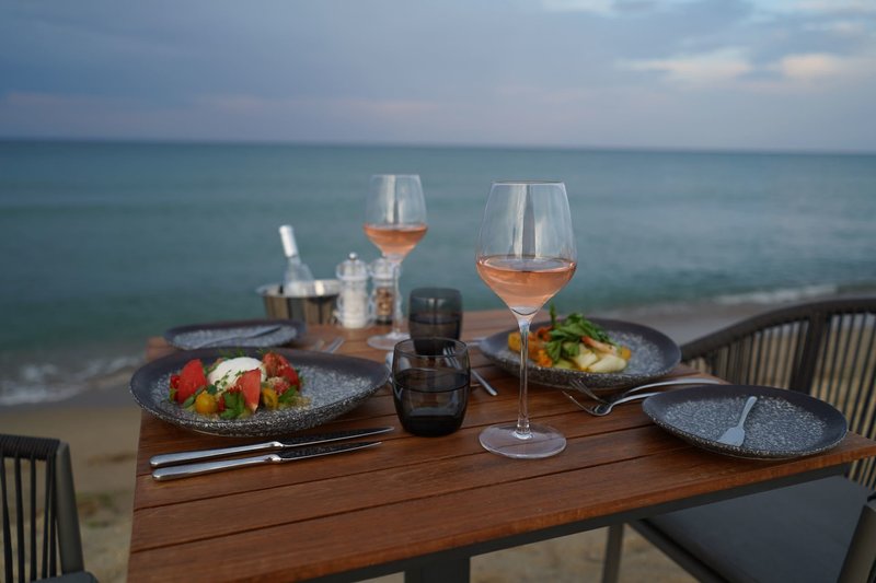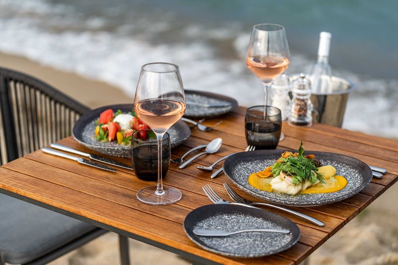 Ultra All Inclusive: A fő büféétterem a főépületben található, a reggeli (kb. 7:30-10:00), ebéd (kb. 12:30-14:00) és vacsora (kb. 18:00-21:00) mellett. Hetente tematikus estek és gyermek harapnivalók a lobbybárban (kb. 21:00 - 01:00). Beach Club (június - szeptember eleje): Ebéd (kb. 12:00 - 16:30, büfé) és vacsora az à la carte étteremben (kb. 19:00 - 21:30, foglalás szükséges). Finom à la carte étterem (június - szeptember eleje): Ezen felül reggeli (kb. 8:30 - 11:00 - à la carte), ebéd (kb. 12:30 - 15:00 - à la carte) és vacsora (kb. 19:00 - 21:30 - à la carte, foglalás szükséges). Snack bár (június - szeptember): Reggeli (kb. 10:00 - 12:00 - büfé) és ebéd (kb. 12:30 - 17:00 - büfé). Lobby bár kb. 7:00 - 1:00 és a "Mezanin" lobby bár kb. 17:00 - 1:00, cukrászda (június-szeptember) kb. 9:00 - 17:00 a wellnessrészlegben kb. 9:30 - 19:30: kb. 9:00 - éjfél (június-augusztus) és kb. 9:00 - 18:00 (május és szeptember). Válogatott helyi és nemzetközi alkoholos és alkoholmentes italok, valamint koktélok, kávé és tea a bárokban, amelyek kb. 7:00 és 1:00 óra között tartanak nyitva.