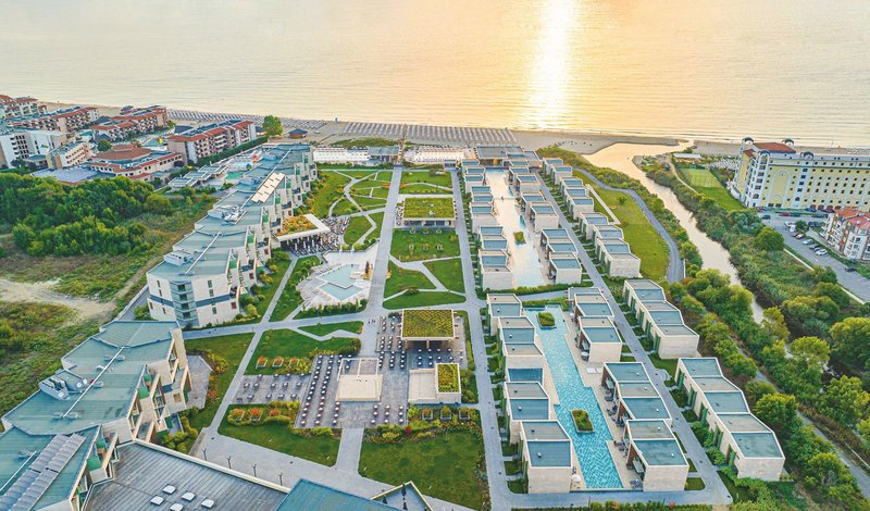 Létesítmények: A 635 szobás fényűző szálloda lenyűgöző építészetével lenyűgöz. Körülbelül 120 000 m² összterülettel rendelkezik, és minden kényelmi szolgáltatást kínál egy felejthetetlen nyaraláshoz. A lobbibárral és főétteremmel rendelkező tágas és elegáns előcsarnokon kívül a szálloda egy fine dining étteremmel, a "Belindával" (június-szeptember eleje), a Beach Club-al (mediterrán à la carte étterem esténként, június-szeptember eleji nyitvatartással), snack bárral (török à la carte étterem esténként és különféle cukrászdákkal) is rendelkezik. Kint három édesvizű úszómedence és két gyermekmedence található csúszdákkal. Számos terasz és zöld terület csábítja a pihenésre, felfrissülésre és lazításra. A további szolgáltatások közé tartozik a fedett medence külön gyermekmedencével, a wellnessrészleg és a fitneszközpont. Az esti szórakoztató programok az amfiteátrumban zajlanak. Itt egy másik bár gondoskodik a vendégek jólétéről. A fiatalabb vendégeket gyerekklub várja, a kicsik pedig jó kezekben vannak a babaklubban. A medencénél és a strandon napágyak és napernyők biztosítottak.