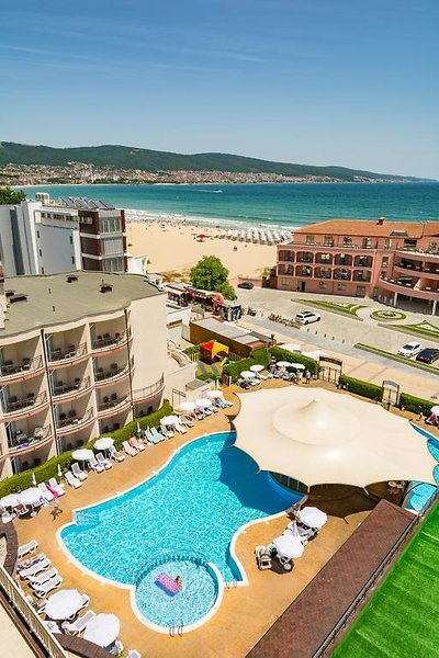 Das Hotel befindet sich in Sonnenstrand, in unmittelbarer nähe vom Strand. Das Ortszentrum mit zahlreichen Einkaufs- und Unterhaltungsmöglichkeiten sowie Restaurants und Bars erreichen Sie nach etwa 1 Km. Der Flughafen von Bourgas liegt in etwa 30 Km entfernung.