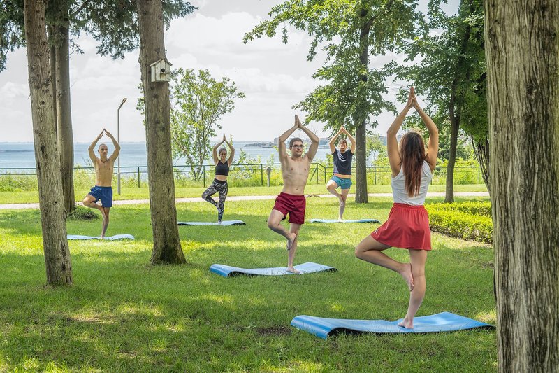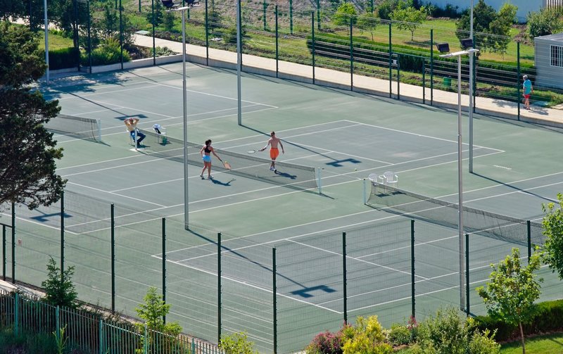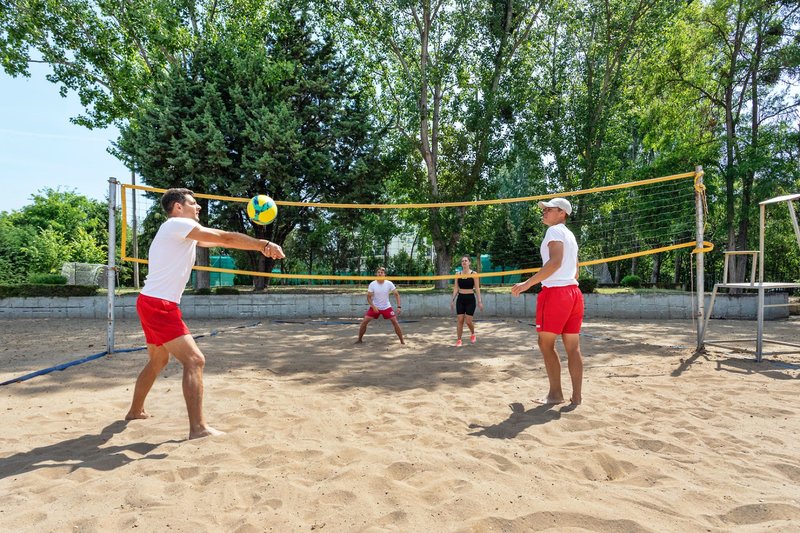 Sport inklusive: Mehrzwecksportplatz, Fußball, Pickleballl, Volleyball, Tischtennis, Darts und Fitnessraum.