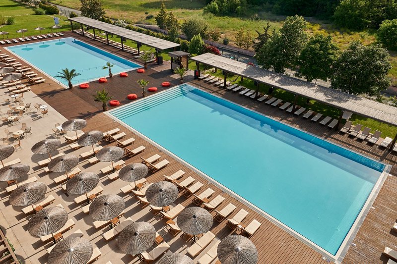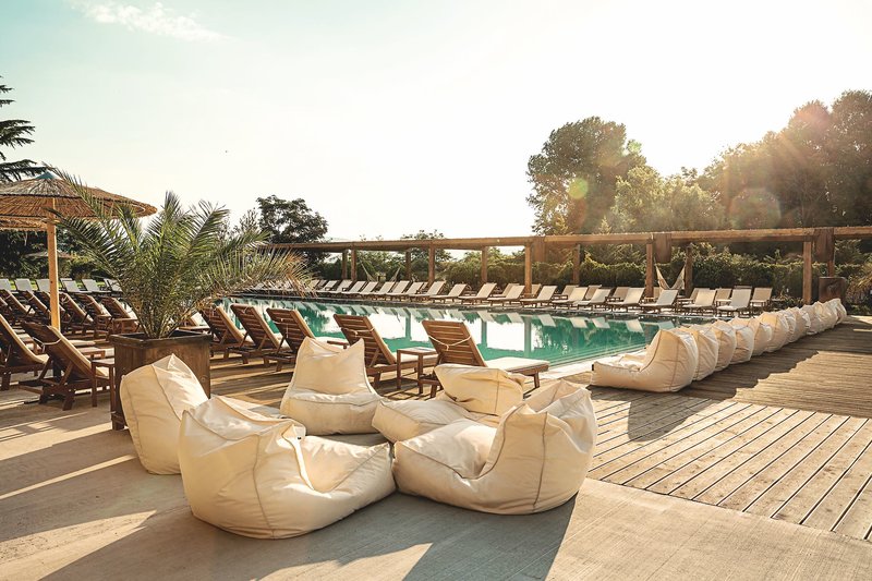 Felszereltség: Ez a kizárólag felnőtteket fogadó, nemzetközi vendégkörrel rendelkező szálloda 300 modern és egyedi, bohém stílusú szobával rendelkezik, öt emeleten. A tágas és világos előcsarnok recepcióval, társalgóval, liftekkel, lobbybárral és medencebárral a szálloda magas színvonalú szolgáltatásait tükrözi. A komplexum szívében két nagy, 25 méter hosszú édesvizű medence található, amelyeket napozóteraszok és számos nyugágy napernyővel (az ár tartalmazza). A medencebár körüli pihenősarok és kabinok csábítják a vendégeket a pihenésre. Itt nyugtató dallamokat élvezhet, laza zenére táncolhat, és pezsgő hangulatot tapasztalhat meg a DJ és az animációs csapat jóvoltából, akik egész nap és este pezsgő hangulatot teremtenek. A medencebárban friss gyümölcsleveket és koktélokat kínálnak (az all-inclusive vendégeknek benne van az árban, a reggelivel megszállóknak felár ellenében). Medencetörölközők kaució ellenében vehetők igénybe. A nyilvános strand egy részén napozóágyak és napernyők felár ellenében állnak rendelkezésre.