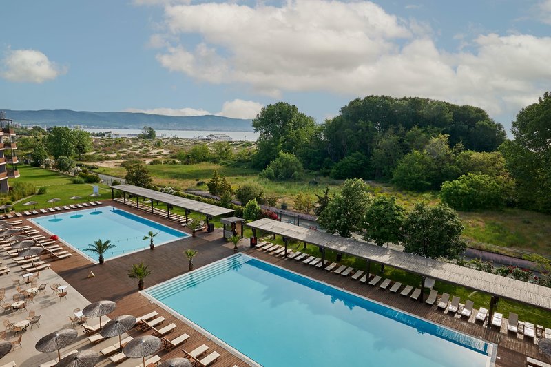 All Inclusive: A "Cantina" svédasztalos étterem kulináris mekkáját kínálja, tele friss, helyi és nemzetközi ételekkel - a tenger gyümölcseitől és a bolgár klasszikusoktól az egészséges vegetáriánus specialitásokig. Sok látványos főzési állomáson a szakácsok könnyedén és hozzáértően varázsolnak reggelit, délelőtt 10-11-ig, ebédet kb. 14 óráig hetente kétszer). Uzsonnák kb. 14:30-16:30 között. Helyi alkoholos italok (pl. vodka, gin, sör és bor) és helyi alkoholmentes italok, valamint kávé és tea a kb. 10 órától este 23 óráig nyitva tartó bárokban.