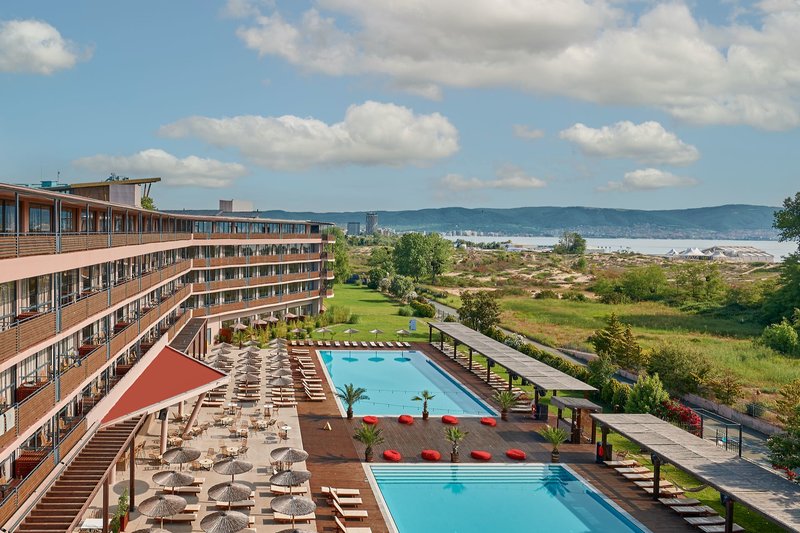 Mindössze néhány kilométerre található, Napospart nyüzsgő központjának szívében, számos bárral, strandklubbal, étteremmel, üzlettel és éjszakai klubbal. Burgasz repülőtere körülbelül 30 km-re található (a transzferidő körülbelül 40 perc).
