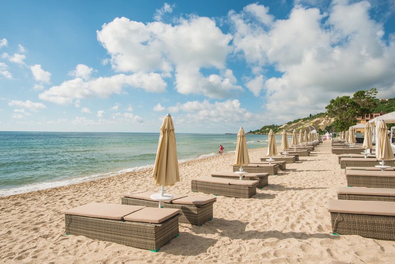 Tengerparti Deluxe Kétágyas Szoba: A tengerparti Deluxe Szobák (kb. 24-26 m²) a "Roxana" épületben találhatók, közvetlenül a tengerparton, erkéllyel és lenyűgöző kilátással a tengerre (B2D). Egy fő részére is foglalható (BEF).