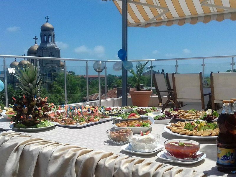 Lage & Umgebung Das Hotel befindet sich im Zentrum der Hafenstadt Varna, direkt neben der Muttergottes-Kathedrale. Diverse Einkaufsmöglichkeiten sowie die kulturellen Einrichtungen der Stadt sind in unmittelbarer Umgebung des Hotels vorzufinden. Der nächste Strandabschnitt ist ca. 15 Gehminuten vom Hotel entfernt. Die Transferzeit zum Flughafen von Varna beträgt etwa 30 Minuten, bei einer Entfernung von ungefähr 7 Kilometern.