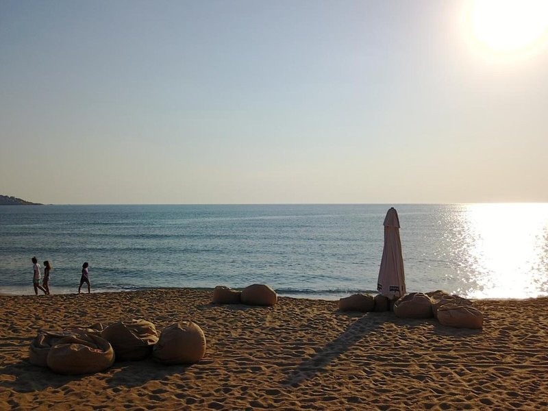 - Strand:Sonnenschirme am Strand, Liegen am Strand, Sandstrand
