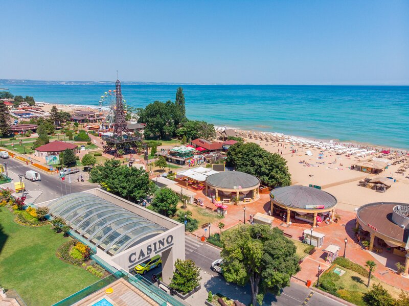 Das Hotel befindet sich im Feriengebiet von Goldstrand an der Strandpromenade. Entlang der Strandpromenade finden Sie zahlreiche Einkaufs- und Unterhaltungsmöglichkeiten sowie Restaurants und Bars. Der Flughafen von Varna liegt in ca. 40 km Entfernung.