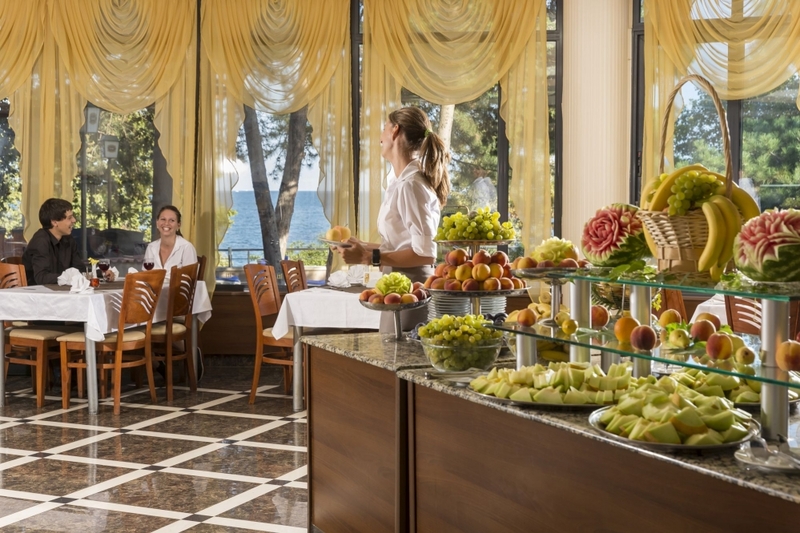 Az all inclusive svédasztalos reggelit, ebédet és vacsorát, későn kelő reggelit, délutáni harapnivalókat, kávét/teát és süteményt, fagylaltot és helyi alkoholos és alkoholmentes italokat tartalmaz 10:00 és 23:00 óra között.