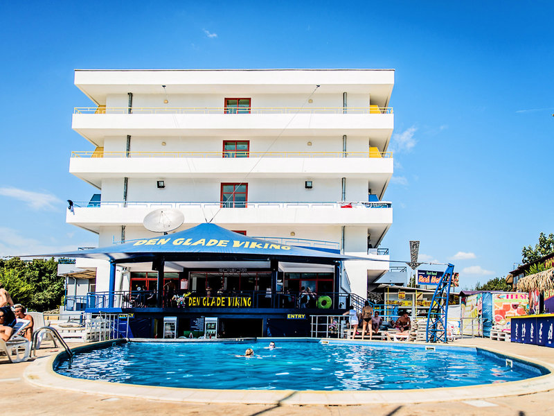 Der Pool auf der Rückseite des Hotels heißt "Den Glade Viking by Day" und verfügt über eine Bar und eine Bühne für Animationen und Mini-Events.