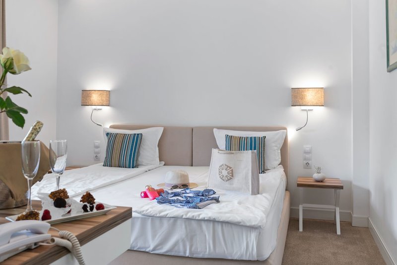 Appartement Meerblick 1SZ ohne Kitchenette: Die Appartements Meerblick 1 Schlafzimmer ohne Kitchenette (ca.40 m²) verfügen, bei sonst gleicher Ausstattung wie die Doppelzimmer Meerblick, über einen Wohn/-Schlafraum mit einem Schlafsofa und über ein separates Schlafzimmer (2AM).