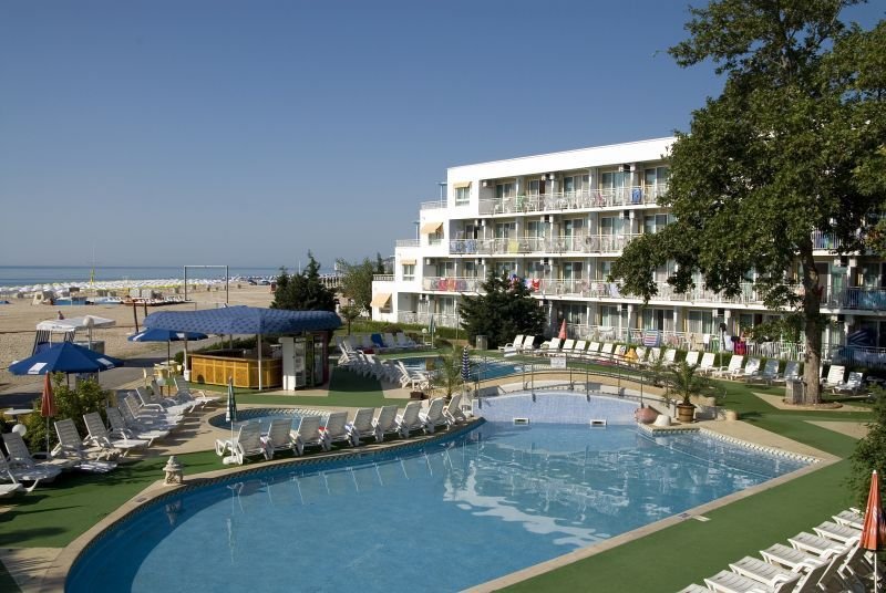 Das Strandhotel verfügt über 2 vierstöckige Gebäude mit insgesamt 141 Zimmern. Es bietet Ihnen eine Empfangshalle mit Rezeption und Lobbybar, Internetecke/WLAN (gegen Gebühr), Hotelsafe (gegen Gebühr), Lift, 2 Restaurants, Bars, medizinische Versorgung, Minimarkt, Wechselstube und Parkmöglichkeiten (gegen Gebühr). Der Außenbereich erwartet Sie mit Swimmingpool, Sonnenterrasse und Poolbar. Liegen, Auflagen und Schirme stehen Ihnen an Pool und Strand kostenfrei zur Verfügung.