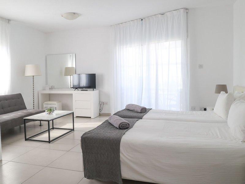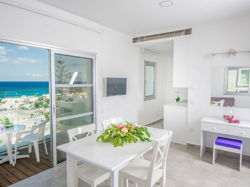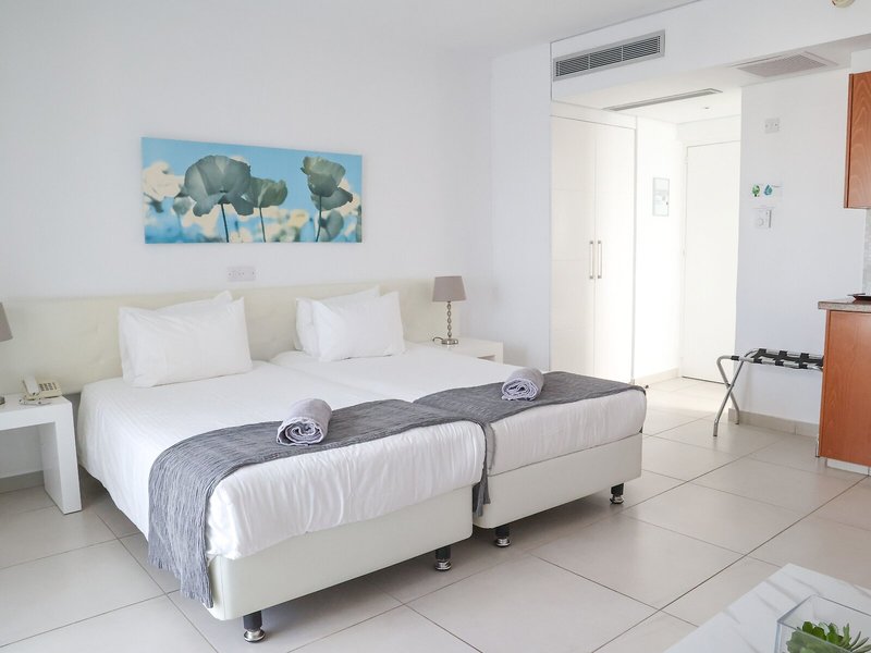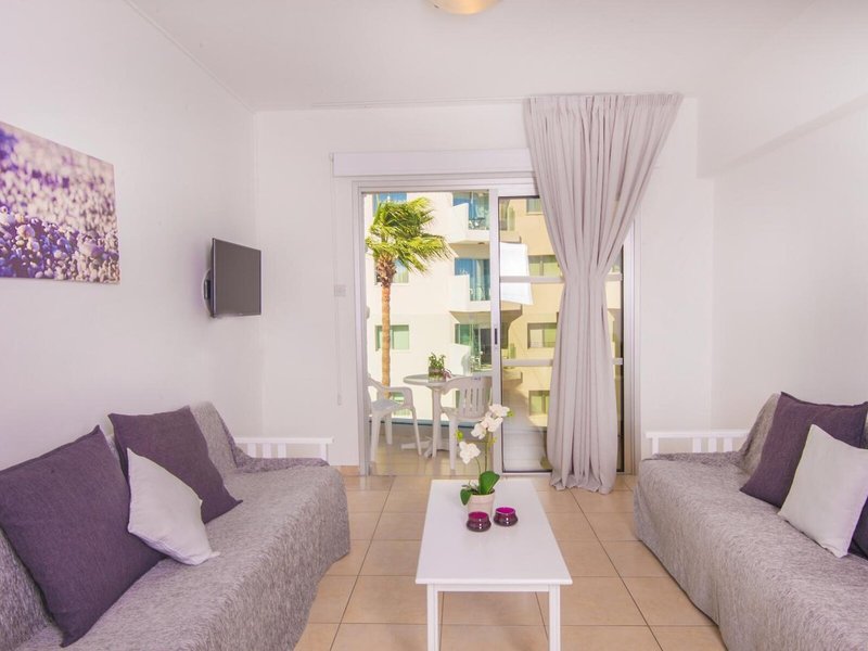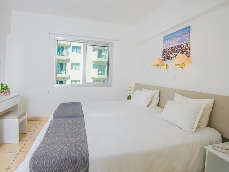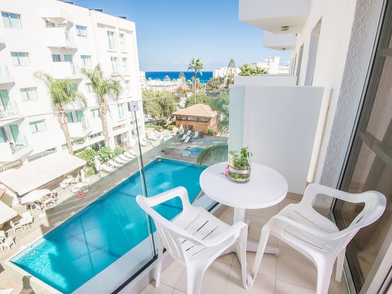 Lage & Umgebung Das Aparthotel befindet sich direkt im Zentrum von Protaras, etwa 200 m entfernt von der berühmten 'Feigenbucht'. Hier genießt man die Annehmlichkeiten eines der besten Familienurlaubsorte auf Zypern. Wassersport wird gegenüber dem Hotel angeboten, regelmäßig bietet eine Tauchschule ihre Dienste an. Die Bushaltestelle ist bequem zu Fuß zu erreichen. Der internationale Flughafen Larnaka liegt rund 65 km entfernt, der internationale Flughafen Paphos etwa 195 km.