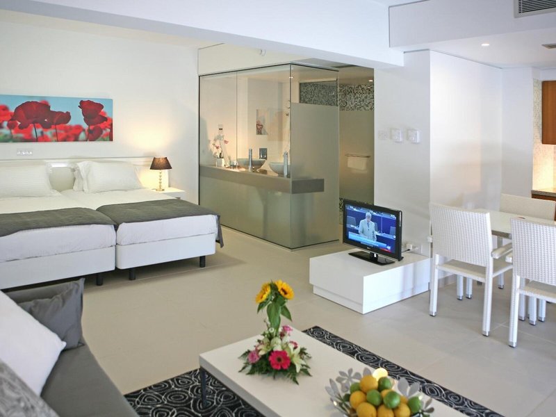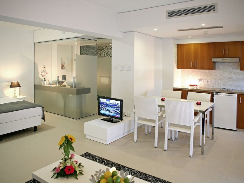 So wohnen Sie: Die Zimmer sind mit einem Wohnzimmer, einer Küche und einem Badezimmer ausgestattet, außerdem sorgen eine Klimaanlage, eine individuell steuerbare Heizung und ein Ventilator für gutes Raumklima. In den meisten Zimmern zählt ein Balkon zum Standard. Gemütlich schlafen können die Gäste auf einem Sofabett. Zustellbetten können angefordert werden. Außerdem sind ein Safe und eine Minibar verfügbar. Es gibt eine umfassend ausgestattete Kochnische mit einem Kühlschrank, einem Herd, einer Mikrowelle und einer Tee-/Kaffeemaschine. Darüber hinaus gibt es eine Waschmaschine und ein Bügelset. Besten Urlaubskomfort bieten ein Telefon mit Direktwahl, ein TV-Gerät, ein Radio und WiFi (ohne Gebühr). Im Badezimmer, ausgestattet mit einer Dusche und einer Badewanne, sind ein Haartrockner und ein Telefon vorhanden. Buchbar sind rollstuhlgerechte Zimmer. Die Unterbringung bietet Familien-, Nichtraucher- und Raucherzimmer.