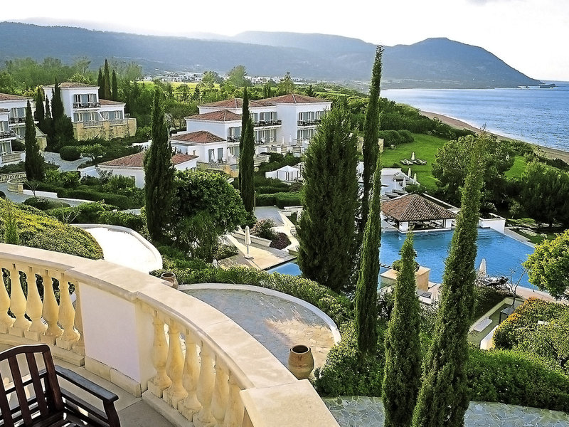 Lage & Umgebung Das Luxushotel Anassa trägt den alt-griechischen Namen für Königin und ist ein wahrhaft königliches Ferienresort, das dem anspruchsvollen Gast besonderen Komfort in exklusiver Abgeschiedenheit bietet. Wunderschön und ruhig gelegen im Nordwesten der Insel, am Rande des Naturschutzgebietes der Akamas Halbinsel in einer malerischen Bucht mit Blick auf die Bäder der Aphrodite. Gebaut im traditionellen Stil eines zyprischen Dorfes mit kleinem Dorfplatz und Kapelle, passt sich das Hotelgebäude, das in eine schöne natürliche Gartenanlage integriert ist, perfekt der Umgebung an. Den groben Sandstrand zu Füßen, gruppieren sich kleinere, weiße Einzelgebäude mit mehreren Wohneinheiten um das 3-stöckige Haupthaus. Die eleganten Suiten bestechen durch edles Mobiliar und helle Stoffe. Transferzeit: ca. 70 Minuten.