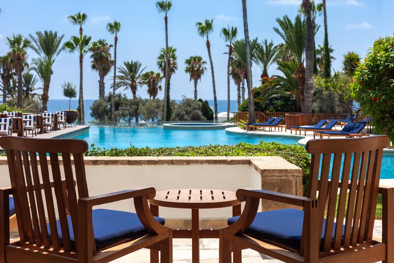 A szálloda körülbelül 300 méterre található a finom homokos strandtól. Paphos központja számos vásárlási és szórakozási lehetőséggel, valamint éttermekkel és bárokkal pár perc sétával elérhető. Egy golfpálya körülbelül 22 km-re található. A repülőtér távolsága körülbelül 20 km.