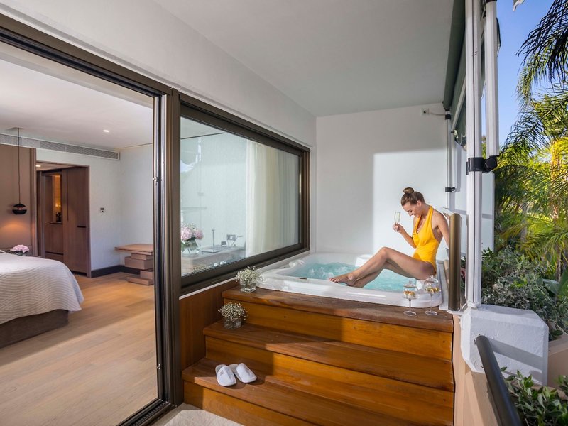- Double Room Garden Adults only (DZX2), Doppelzimmer, Mindestalter im Zimmer: 18 Jahre, im Nebengebäude, Gartenblick, ca. 32 m², letzte Komplettrenovierung 2017, Gesamtanzahl der Räume in diesem Zimmertyp: 1, Aufteilung wie folgt: kombiniertes Wohn-/Schlafzimmer, Klimaanlage: individuell regelbar, Fußboden: Parkett, Safe: ohne Gebühr, Schreibtisch, Nespressomaschine, Kaffee-/Teezubereiter, Wasserkocher, Minibar: gegen Gebühr, Softdrinks: gegen Gebühr, Wasser: gegen Gebühr, alkoholische Getränke: gegen Gebühr, Snacks: gegen Gebühr, Minibarauffüllung: täglich, Telefon, Internet: WLAN/WiFi: ohne Gebühr, Fernseher: Flatscreen, deutsches Programm, Sat-TV, Roomservice: gegen Gebühr, Reinigungsservice: ohne Gebühr, Dusche, Badewanne, WC, Bademantel: ohne Gebühr, Slipper: ohne Gebühr, Föhn, Balkon: mit Whirlpool, mit Sitzgelegenheit