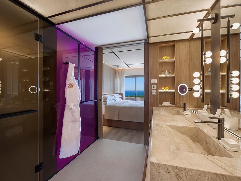 - Signature Lakosztály (SUM2), lakosztály, nemdohányzó szoba, a főépületben, tengerre néző, kb. 56 m², utolsó teljes felújítás 2023-ban, teljes szobaszám ebben a szobatípusban: 2, elrendezése a következő: 2 db. szobák, vizuálisan tolóajtóval elválasztva, klíma: egyénileg szabályozható, fűtés: november - április; időjárásfüggő, egyénileg állítható, padló: laminált, széf: térítés ellenében, kanapé, íróasztal, Nespresso gép, kávé/teafőző, vízforraló, minibár: térítés ellenében, üdítők: térítés ellenében, víz: térítés ellenében, alkoholos italok : térítés ellenében, uzsonna: térítés ellenében, minibár feltöltése: naponta, telefon, Internet: WLAN/WiFi: térítésmentes, televízió: síkképernyős, nappaliban, hálószobában, német program, műholdas TV, szobaszerviz: Napi 24 óra, térítés ellenében, takarítás: naponta, térítésmentes