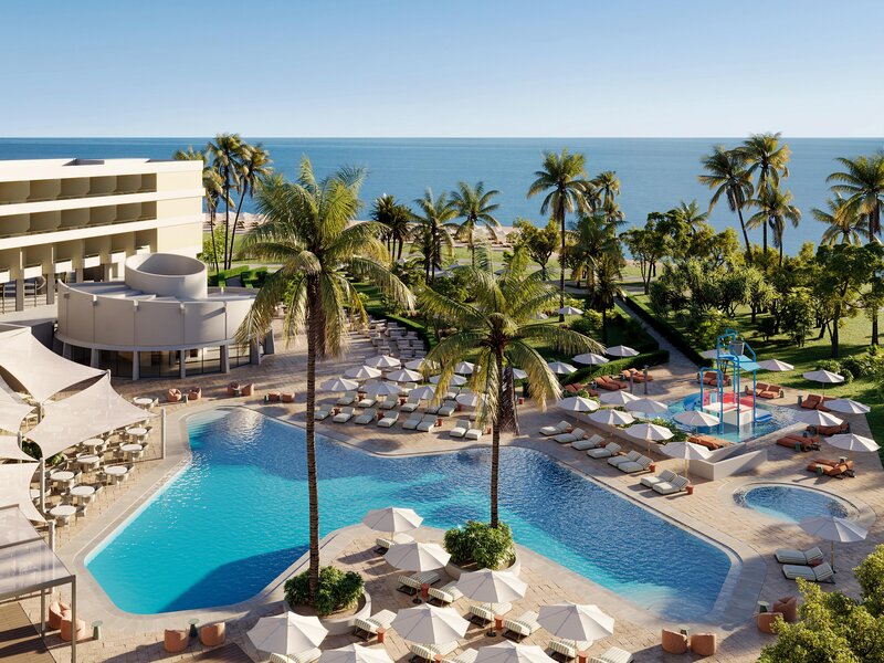 Das Strandhotel der gehobenen Mittelklasse verfügt auf 5 Etagen über insgesamt 239 Zimmer. Es bietet Ihnen eine Empfangshalle mit Rezeption, Lifte, zwei klimatisierte Restaurants, 2 a-la-carte Restaurant (im neueröffneten Asia-a-la-carte-Restaurant gibt es bei All inclusive ein spezielles Menü einmal pro Aufenthalt), 2 Bars, ein Cafe, ein Geschäft, ein Friseur, ein TV-Raum, ein Konferenzraum, ein Parkplatz und eine Garage. In der gepflegten Außenanlage des Hotels befinden sich ein Swimmingpool, ein Kinderbecken, eine Pool-/Snackbar sowie eine Sonnenterrasse mit Liegestühlen und Sonnenschirmen. Für die kleinen Gäste gibt es einen Spielplatz und einen Miniclub (4 bis 12 Jahre).