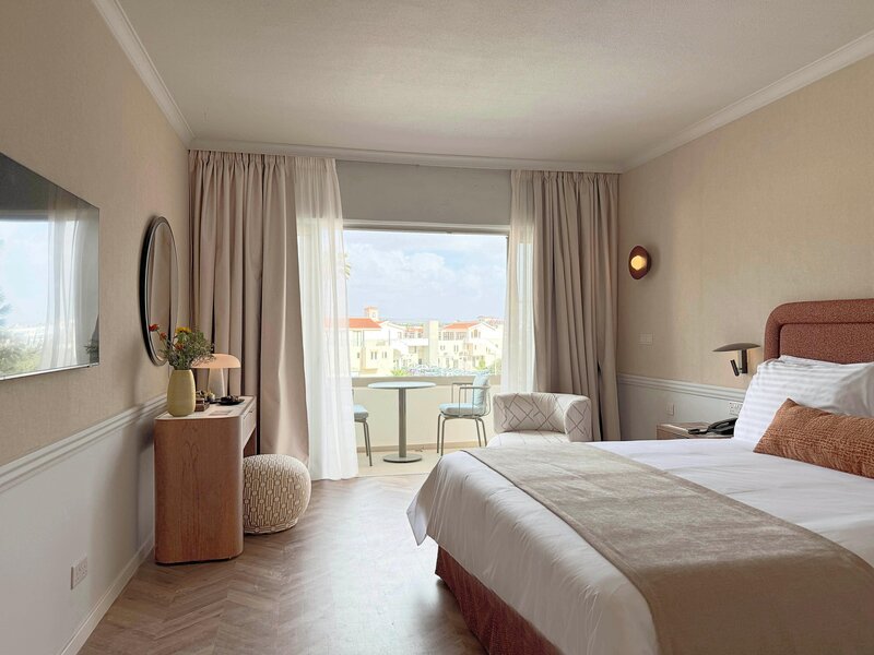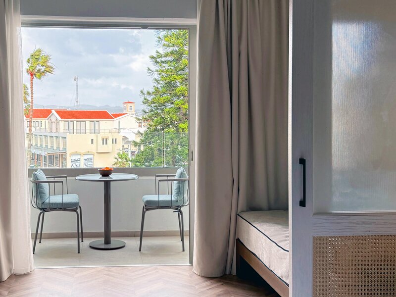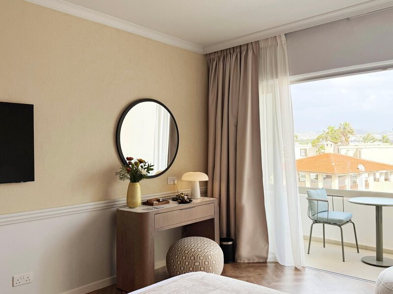 Das Hotel befindet sich nur wenige Schritte vom Strand entfernt. Es bietet eine schöne Aussicht auf den Hafen und die Burg von Paphos. In der unmittelbaren Umgebung befinden sich verschiedene Einkaufsmöglichkeiten, Restaurants, Bars und Tavernen sowie öffentliche Verkehrsmittel. Das Stadtzentrum mit dem Fischerhafen ist ca. 2 km entfernt.