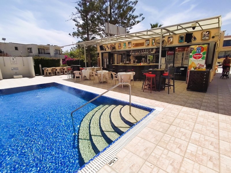 Elhelyezkedés és környezet Ez a komplexum ideális azok számára, akik békét és kényelmet keresnek. A falu forgalmas részén kívül található, de mindössze 5 percre Ayia Napa központjától és gyönyörű homokos strandjaitól. A tömegközlekedési hálózat (kb. 50 m) mellett a vendégek bárokat, tavernákat, éjszakai klubokat, üzleteket és egy kozmopolita üdülőfalu minden kényelmét megtalálják, körülbelül 1500 m-re a Nissi Beach és a Larnaca repülőtér körülbelül 50 km-re található.