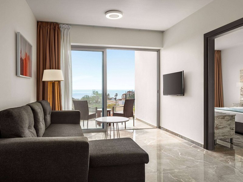 So wohnen Sie: In den Zimmern gibt es eine Klimaanlage und eine Heizung. Die Gäste können den Meerblick von Balkon oder Terrasse genießen. Die Zimmer verfügen über ein Doppelbett und ein Sofabett. Auch Baby- und Zustellbetten können zur Verfügung gestellt werden. Außerdem sind ein Safe und eine Minibar verfügbar. Es gibt eine umfassend ausgestattete Kochnische mit einem Kühlschrank, einem Minikühlschrank, einem Herd, einer Mikrowelle und einer Tee-/Kaffeemaschine. Für optimalen Komfort sorgen ein Telefon mit Direktwahl, ein TV-Gerät, ein Radio und WiFi. Zu den Vorzügen der Zimmer gehören Hausschuhe. Das Badezimmer, ausgestattet mit einer Dusche und einer Badewanne, verfügt über einen Haartrockner. Buchbar sind rollstuhlgerechte Zimmer. Für Eltern mit Kindern stehen Familienzimmer zur Verfügung.