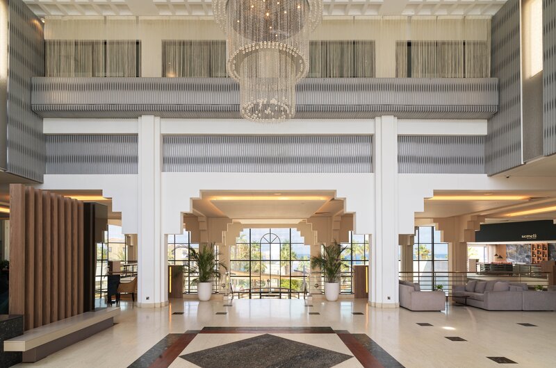 Die Hotelanlage bietet 255 Zimmer, die sich auf 7 Etagen verteilen. Zu den zahlreichen Einrichtungen gehören eine Empfangshalle mit Rezeption, Internetecke gegen Gebühr, Hotelsafe, Lift, 3 Restaurants und 3 Bars, TV-Raum, Hallenbad sowie ein Friseur, Parkmöglichkeiten und ein kleines Geschäft. Im gepflegten Außenbereich befindet sich der Swimmingpool mit Sonnenterrasse und Poolbar. Liegen, Schirme und Badetücher sind am Pool und am Strand kostenfrei.
