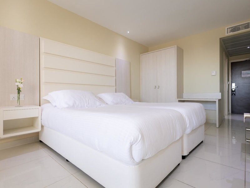 - Inland View Room (DZX1), Doppelzimmer, Neubau, Landseite, Innenhofblick, Landblick, ca. 23 m², letzte Komplettrenovierung 2016, Gesamtanzahl der Räume in diesem Zimmertyp: 1, Aufteilung wie folgt: 1 Schlafzimmer, 2 Einzelbetten (1,2x2cm), Klimaanlage: ohne Gebühr, Mai - Oktober, zentral gesteuert, kalt, Fußboden: Fliesenboden, Safe: ohne Gebühr, Schreibtisch, Kaffee-/Teezubereiter, Telefon, Internet: WLAN/WiFi: ohne Gebühr, Fernseher: Flatscreen, im Schlafzimmer, deutsches Programm, Sat-TV, Radio, Roomservice: gegen Gebühr, Dusche, WC, Föhn, Kosmetikspiegel, Balkon: mit Sitzgelegenheit