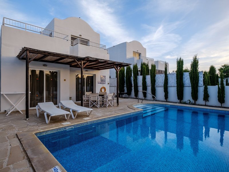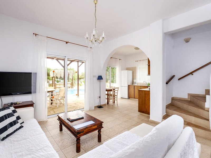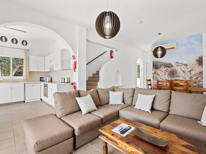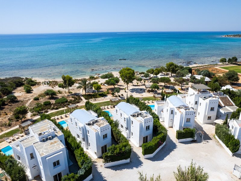 Elhelyezkedés és környék Ez a villahotel egy nagyon csendes környéken található, közvetlenül a tengerparton, és nagyon közel van Ayia Napa híres üdülőhelyéhez (kb. 6 km). További közeli falvak Liopetri és Sotira (kb. 3 km, illetve 8 km). A buszmegálló körülbelül 2 perces sétával elérhető a rezidenciától. Larnaca nemzetközi repülőtere körülbelül 48 km-re található.