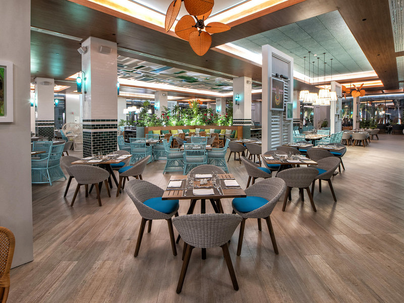 - Hauptrestaurant „Buffet Caribe“: ab 18 Jahre, Küche: international, Fisch/Meeresfrüchte, Grillgerichte, Buffet, Showcooking, ohne Gebühr, klimatisierbar, mit Terrasse, Kinderhochstuhl