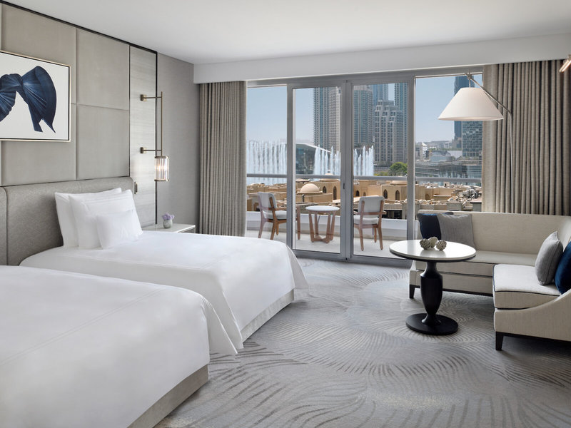 - Premier Fountain View Room (DZX4), im Hauptgebäude, Blick auf Fountain, ca. 70 m², Klimaanlage, Fußboden: Teppichboden, Safe, Schreibtisch, Bügeleisen, Nespressomaschine, Kaffee-/Teezubereiter, Minibar: gegen Gebühr, Softdrinks: gegen Gebühr, Wasser: gegen Gebühr, alkoholische Getränke: gegen Gebühr, Snacks: gegen Gebühr, Minibarauffüllung: täglich, Telefon, Internet: WLAN/WiFi: ohne Gebühr, Fernseher, Roomservice, Reinigungsservice: täglich, ohne Gebühr, Badewanne oder Dusche, Föhn, Balkon oder Terrasse