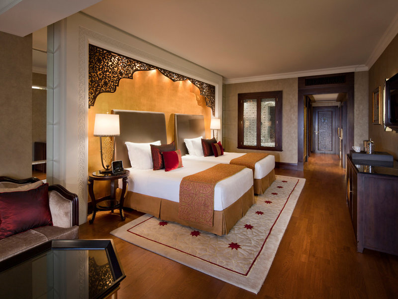 Lage & Umgebung Inspiriert durch das Leben im Osmanischen Reich spiegelt das Zabeel Saray einen Palast wider, der neben seiner Lage auf der legendären Palm Jumeirah alle wünschenswerten Annehmlichkeiten bietet. Alle Zimmer mit herrlichem Blick auf den Arabischen Golf, direkt „vor der Tür“ makelloser weißer Sandstrand, das „Talise Ottoman Spa“ mit einem der größten Türkischen Bäder der Welt und eine Auswahl an einzigartigen internationalen Restaurants. Transferzeit: ca. 50 Minuten.