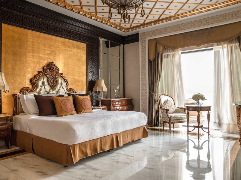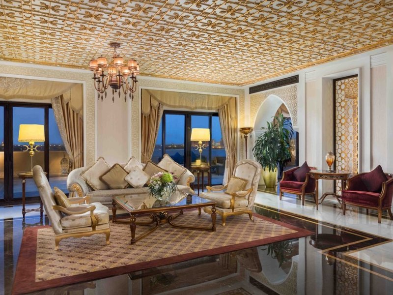 - Két hálószobás lakosztály (SUX2), a főépületben, tengerre néző, kilátással a medencére, kilátással a Palm Jumeirah-ra, kb. 142 - 142 m², összesen szobaszám ebben a szobatípusban: 2, elrendezése a következő: 2 szoba, optikailag elválasztva tolóajtóval , nappali, 2 hálószoba, 2 queen-size ágy (140x200cm), 1 king-size ágy (200x200cm), 1 pótágy (120x200cm), babaágy, klíma: egyénileg állítható, központilag vezérelhető , padló: parketta, széf, kanapé, íróasztal, vasaló, vasalódeszka, kávéfőző, kávé/teafőző, vízforraló, minibár: térítés ellenében, minibár utántöltés, telefon, TV: síkképernyős, műholdas TV, iPod dokkoló, szobaszerviz: térítés ellenében, takarítás, zuhanyzó, külön zuhanyzó, esőzuhany, fürdőkád, wc, fürdőköpeny, papucs, 2 fürdőszoba, hajszárító, erkély: ülőgarnitúrával