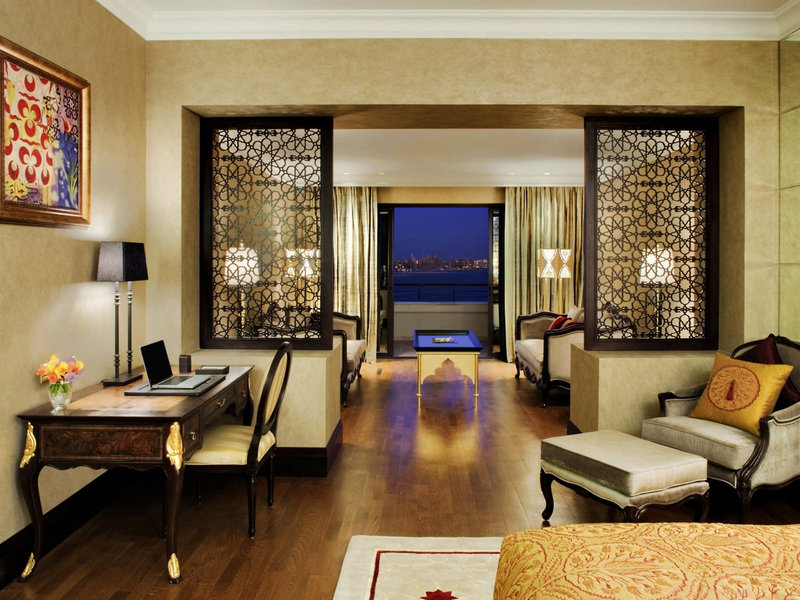 - One Bedroom Suite (SUX1), Suite, im Hauptgebäude, Meerseite, Meerblick, Poolblick, Blick auf Palm Jumeirah, ca. 94 - 94 m², Gesamtanzahl der Räume in diesem Zimmertyp: 2, Aufteilung wie folgt: bestehend aus 2 Zimmern, optisch getrennt durch Schiebetür, Wohnzimmer, 1 Schlafzimmer, 1 King Size Bett (200x200cm), 1 Zustellbett (120x200cm), Klimaanlage: individuell regelbar, zentral gesteuert, Fußboden: Parkett, Safe, Sofa, Schreibtisch, Bügeleisen, Bügelbrett, Kaffeemaschine, Kaffee-/Teezubereiter, Wasserkocher, Minibar: gegen Gebühr, Minibarauffüllung, Telefon, Internet: WLAN/WiFi, Breitband-Internet/DSL, Fernseher: Flatscreen, Sat-TV, iPod-Docking Station, Roomservice: gegen Gebühr, Reinigungsservice, Badewanne oder Dusche, Dusche, separate Dusche, Regendusche, Badewanne, WC, separates WC, Bademantel, Slipper, Föhn, Balkon: mit Sitzgelegenheit