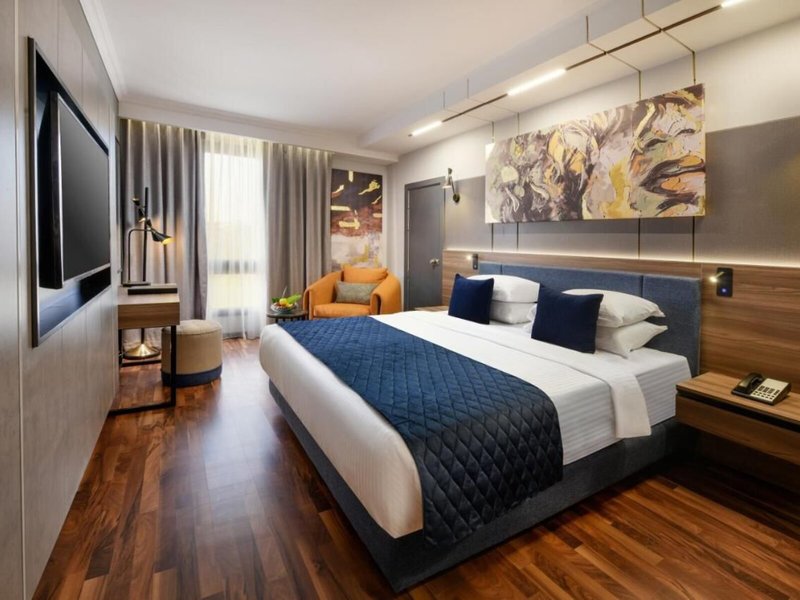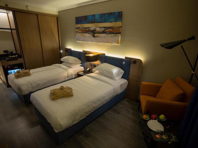 Szállás: A szobák légkondicionálóval és fűtéssel felszereltek. A vendégek csodálatosan pihenhetnek az erkélyen vagy a teraszon. A szőnyegpadlós szobákban franciaágy, queen-size ágy vagy king-size ágy található. Pótágyak igényelhetők. Széf és íróasztal is rendelkezésre áll. Mini hűtőszekrény és tea-/kávéfőző is rendelkezésre áll. Vasalókészlet és nadrágvasaló is rendelkezésre áll. Az optimális kényelem érdekében közvetlen telefonvonal, műholdas vétellel és fizetős csatornákkal ellátott TV, hálózati adapter, ébresztőóra és ingyenes wifi gondoskodik a vendégek kényelméről. A szobákban papucs is található. A fürdőszobákban zuhanyzó, fürdőkád és bidé található. Hajszárító is rendelkezésre áll. Különlegességként a fürdőszobákban kozmetikai termékek és törölközőválaszték áll rendelkezésre. Kerekesszékkel megközelíthető szobák foglalhatók. Családi szobák állnak rendelkezésre gyermekes szülők számára.