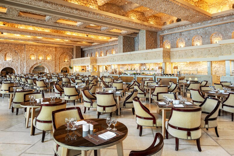 Das außergewöhnliche Hotel, das nur mit natürlichen Materialien aus der Region gebaut wurde, ist wie ein kleines mediterranes Dorf mit eigenem Hafen. Es gibt insgesamt 552 Zimmer und Suiten, die alle einen atemberaubenden Meerblick haben. Zudem verfügt das Hotel über eine elegante Rezeption mit Lobby, verschiedene Bars sowie (4 Buffetrestaurants: international, orientalisch, italienisch, asiatisch, Star Fisch und Golden Booda gegen Gebühr, 1 a la Carte Restaurant italienisch 1 mal inklusive pro Aufenthalt), Shisha Bar (gegen Gebühr), Geschäfte und ein Amphitheater. WLAN steht Ihnen in der gesamten Hotelanlage kostenlos zur Verfügung.