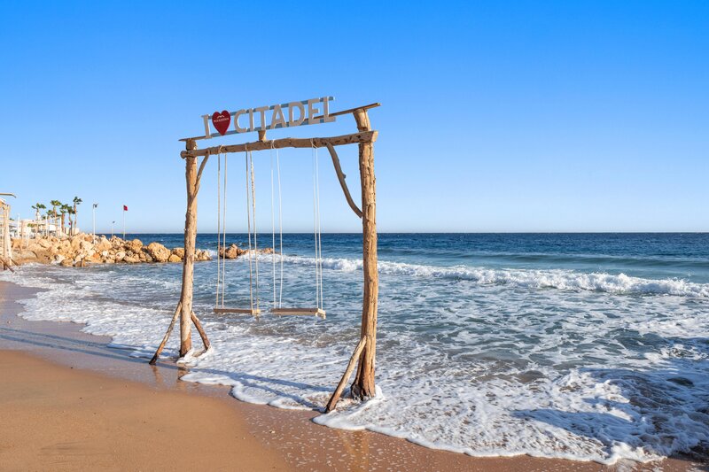 Az 1,6 kilométer hosszú strandon három strandbár található. A szálloda saját kikötőjében található a vízisport-központ. A napozóágyak, napernyők és párnák ingyenesen használhatók a medencénél és a strandon.