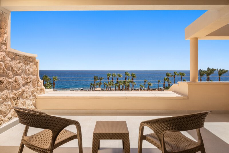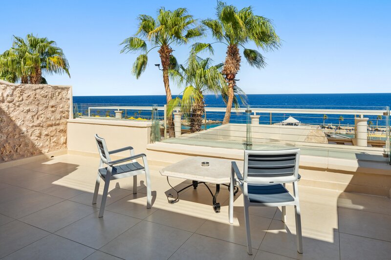 Die Zimmer haben Dusche, WC, Föhn, Toilettenartikel, Sat. TV, Minibar, täglich Wasser und Softgetränke, Kaffee/Tee-Zubereitungsmöglichkeit, Klimaanlage, WLAN, Safe und Balkon/Terrasse. Alle Zimmer haben Meerblick.Buchbar sind Doppelzimmer Standard (DZ/EZ), auch zur Alleinnutzung. Die Deluxezimmer (DZX/EZX) sind identisch ausgestattet, nur größer (auch zur Alleinnutzung). Die Doppelzimmer Superior Swim Up (DUS/EUS) bieten Zugang zu einem Pool. Es gibt zudem Sparzimmer (DZP) mit Balkon/Terrasse.Zimmercodes Sommer 2025