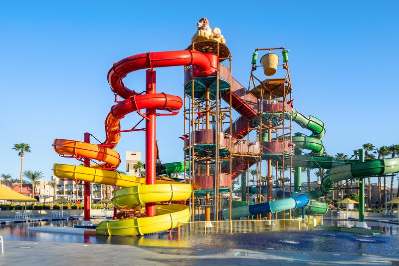 változatos kültéri terület egy medencekomplexummal rendelkezik, amely 10 édesvizű úszómedencéből áll (melyek közül 2 télen fűtött, köztük egy télen fűtött gyermekmedence), valamint csúszdákkal ellátott medencék gyermek- és felnőtt medencék és környező napozóteraszok. A napozóágyak, párnák, napernyők és strandtörölközők ingyenesen állnak rendelkezésre a medencénél és a strandon, valamint egy strandbár is található.