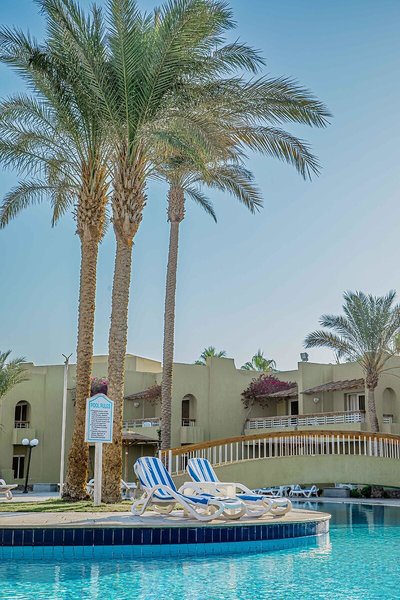 Lage & Umgebung Das Hotel ist ruhig gelegen und befindet sich in erster Strandlage. Das Zentrum von Hurghada ist nur 7 km entfernt, El Gouna etwa 22 km. Transferzeit vom Flughafen ca. 15 min.