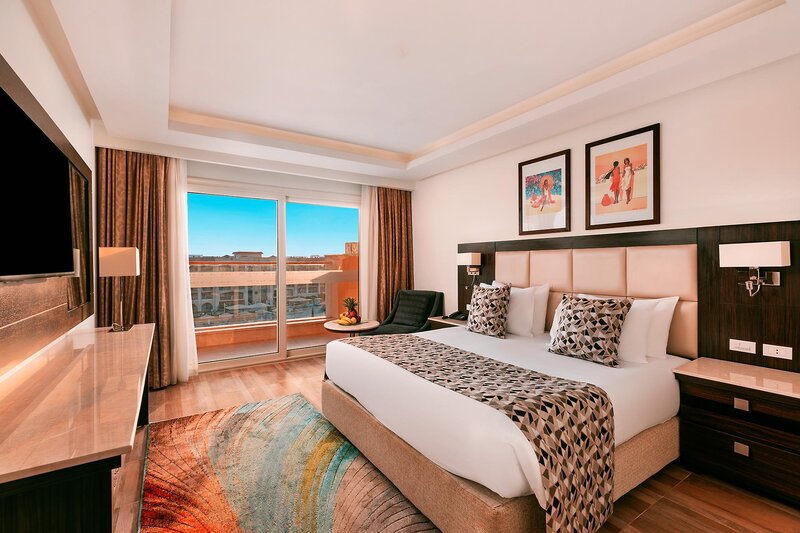 Die Ferienanlage besteht aus 473 Zimmern verteilt auf 1 Haupthaus und 2 Gebäudeflügel. Zudem gibt es eine Empfangshalle mit Rezeption, WLAN in der gesamten Anlage inklusive, verschiedene Restaurants (italienische, asiatische, orientalische oder internationale Küche), Snack-Bar, 7 verschiedene Café und Bars sowie Geschäfte. In der Anlage gibt es auch einen Friseur und Schönheitssalon. Im Außenbereich befindet sich die großzügige Poollandschaft mit 2 Erwachsenenpools (1 davon im Winter beheizt) und 4 Kinderpools (alle beheizbar) mit insgesamt 12 Rutschen. Liegen, Sonnenschirme und Badetücher sind an Pool und Strand inklusive.